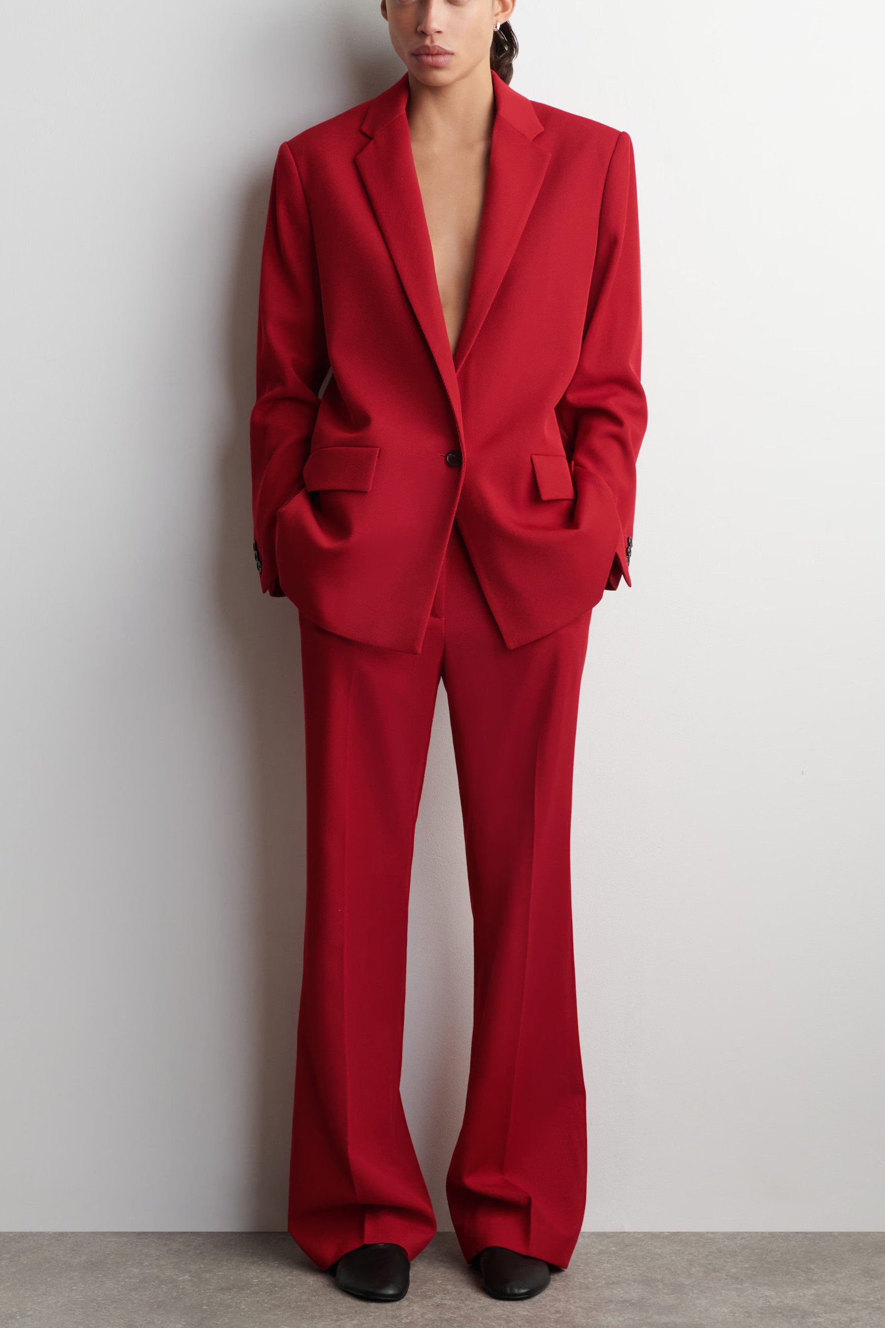Figursydd kavaj och utsvängd byxa i mörkgrön sammet, ZARA
